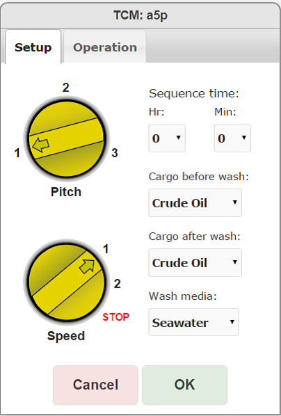 Once the user clicks on specific tank, this control window will automatically open. Desired pitch, speed, sequence time and washing media is selected. Just click "OK" and You're all set!